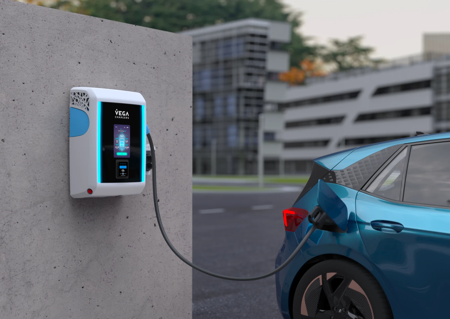 Estabelecemos uma parceria estratégica com a VEGA Chargers para a nossa oferta de carregamento DC. Sendo um fabricante europeu com foco exclusivo nesta tecnologia, a VEGA desenvolve soluções que se destacam por serem elegantes, fiáveis e simples de usar. Esta especialização permite-nos garantir aos nossos clientes uma infraestrutura de carregamento rápido que combina um design cuidado com uma operação intuitiva e eficiente para o dia a dia.